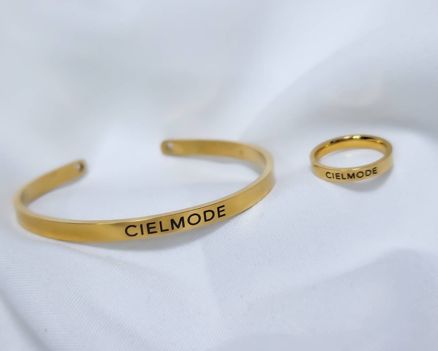 CIELMODE GOLD NAME BANGLE & RING SET